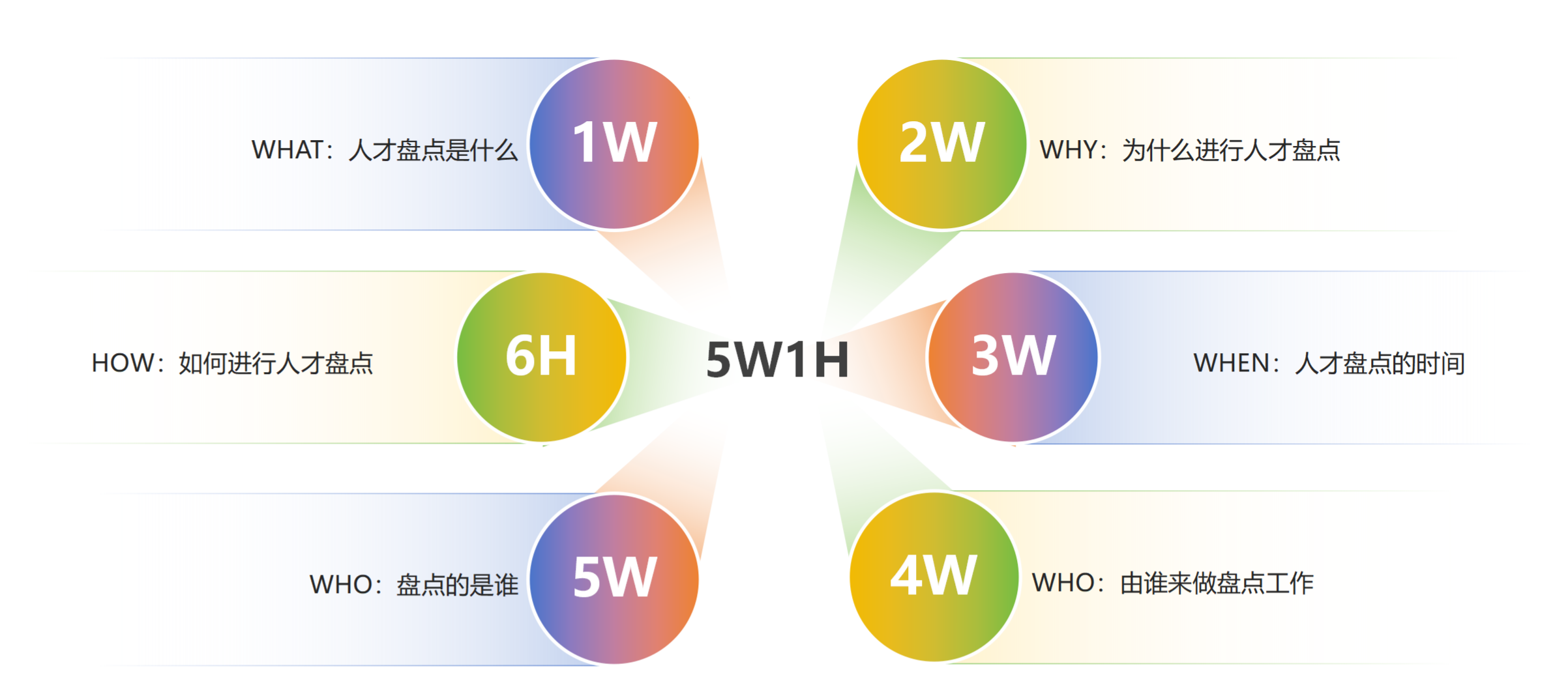 如何进行人才盘点:正式人才盘点前,通常需要明确6个问题,“5W1H”: