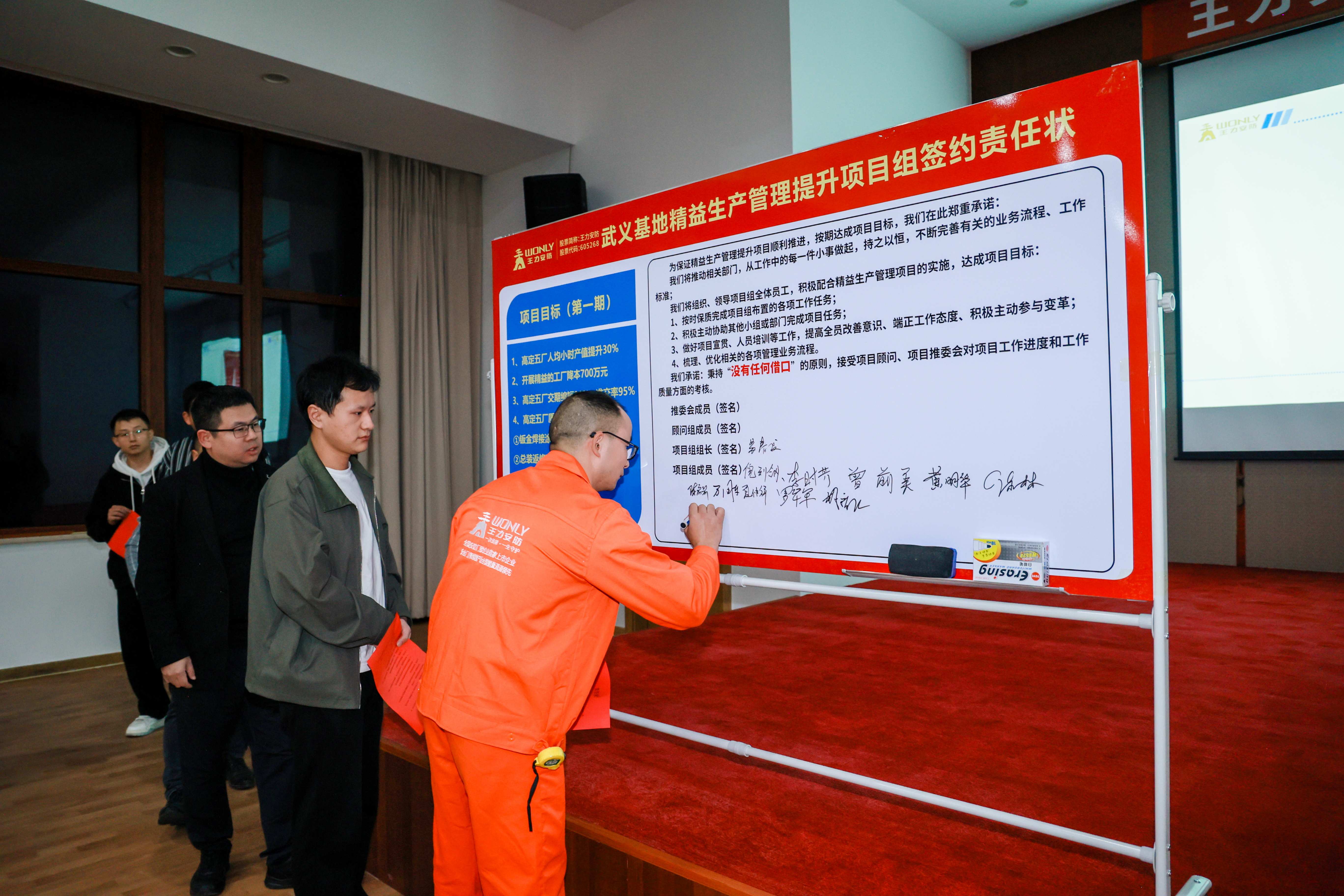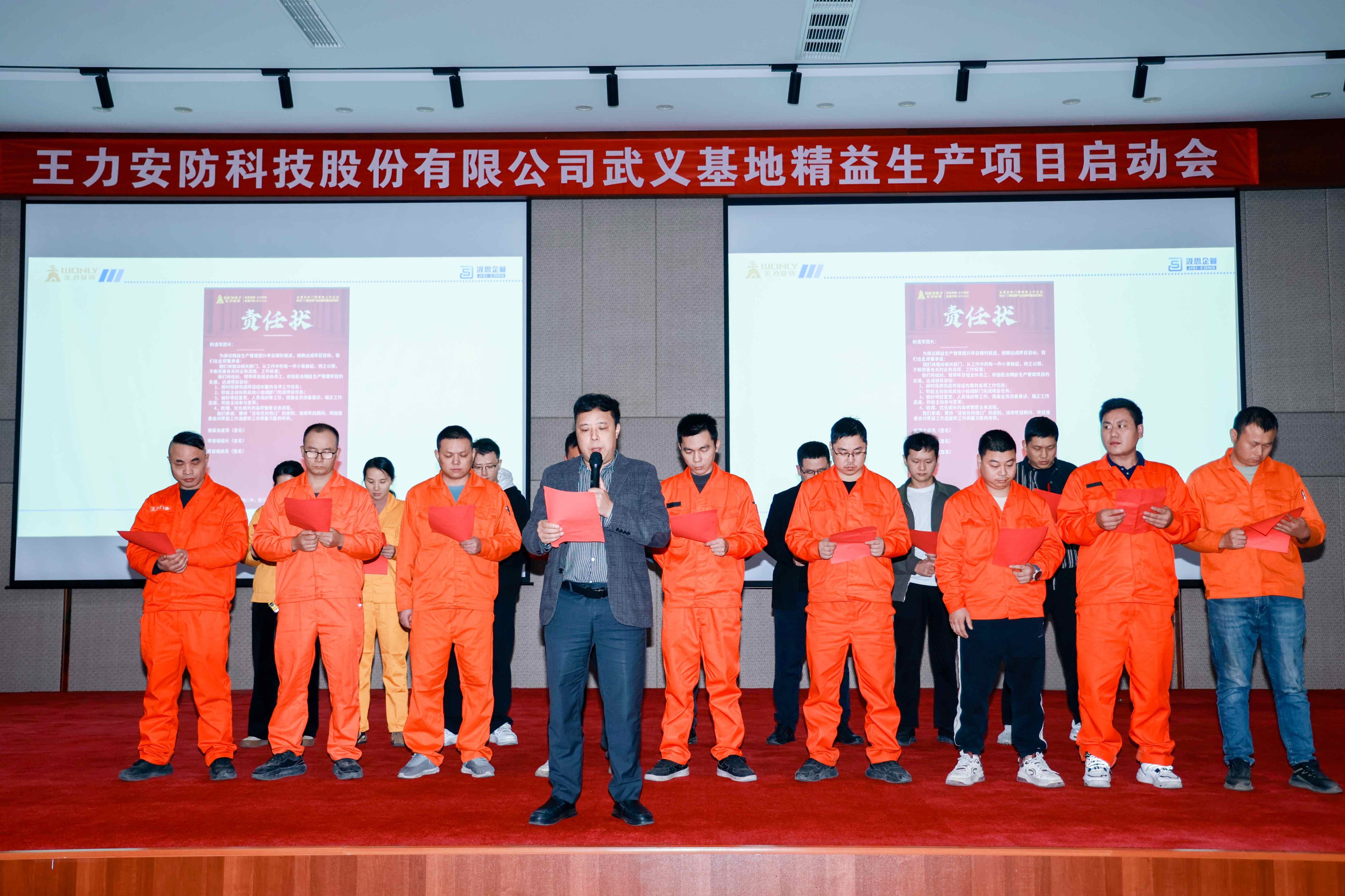 紧接着,王力安防武义基地苏总经理带领全体项目成员宣读并签署责任状,以“责任状”凝聚全员合力,为项目推进奠基。苏总强调:“精益生产是王力突破瓶颈、迈向卓越的必由之路。当前市场竞争激烈,唯有优化管理、提效提质才能筑牢竞争力,期待与汲思企管携手实现运营与管理质的飞跃。”